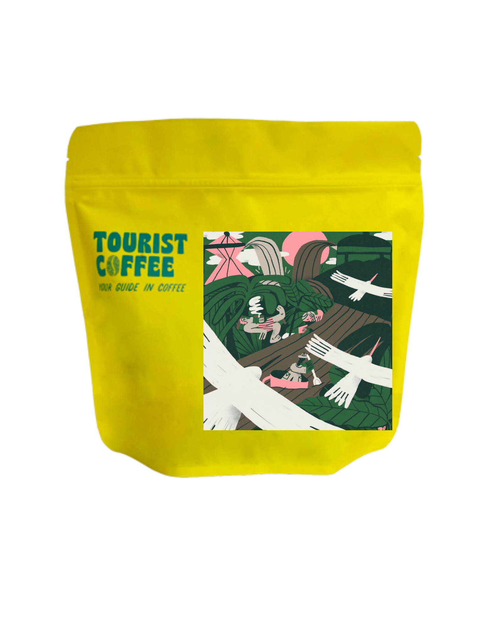 El lote de Pacamara fue procesado como natural con fermentacion de 36 h en bolsas y 70 h en canecas anaerobicas despues se paso al secado por flujo de vientos calidos del oriente y resulto en un perfil especiado ducle tropical.