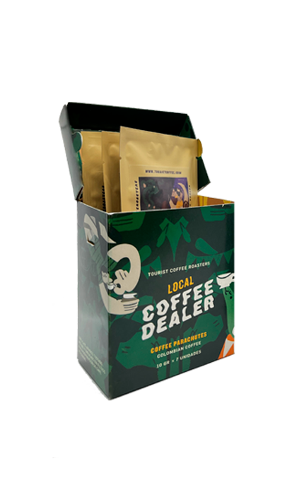Hemos desarrollado las unidades de cafe personalizado que llamamos “Coffee Parachutes” para que puedas disfrutar nuestras mejores ediciones en cualquier lugar, ocasión y compartirlas con tus amigos y familia. Cada cajita viene con 7 sachets.